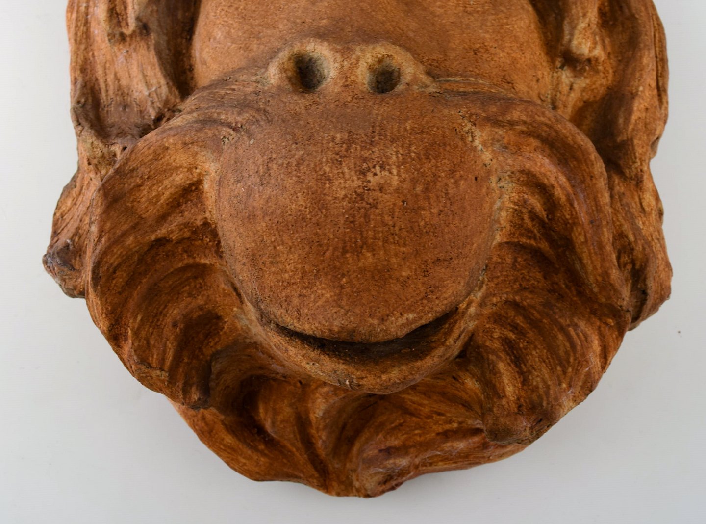 Jean René Gauguin: f. Paris 1881, d. Copenhagen 1961. Stort og imponerende orangutang ansigt i chamotte ler. Måler: 45 cm x 26 cm. Dybde: 11 cm. I perfekt stand.