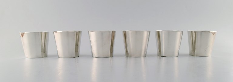 Sigvard Bernadotte for Gense. Sæt på 6 stk jagtbægre/drinkbægre i nysølv. Moderne svensk design, 1960'erne. Stemplet. I perfekt stand. Måler: 8 cm x 7 cm.
