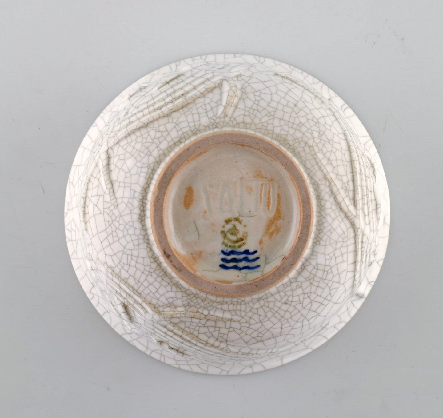 Axel Salto for Royal Copenhagen. Krakeleret / craquelé skål af glaseret stentøj. Hvid glasur. 1940'erne.