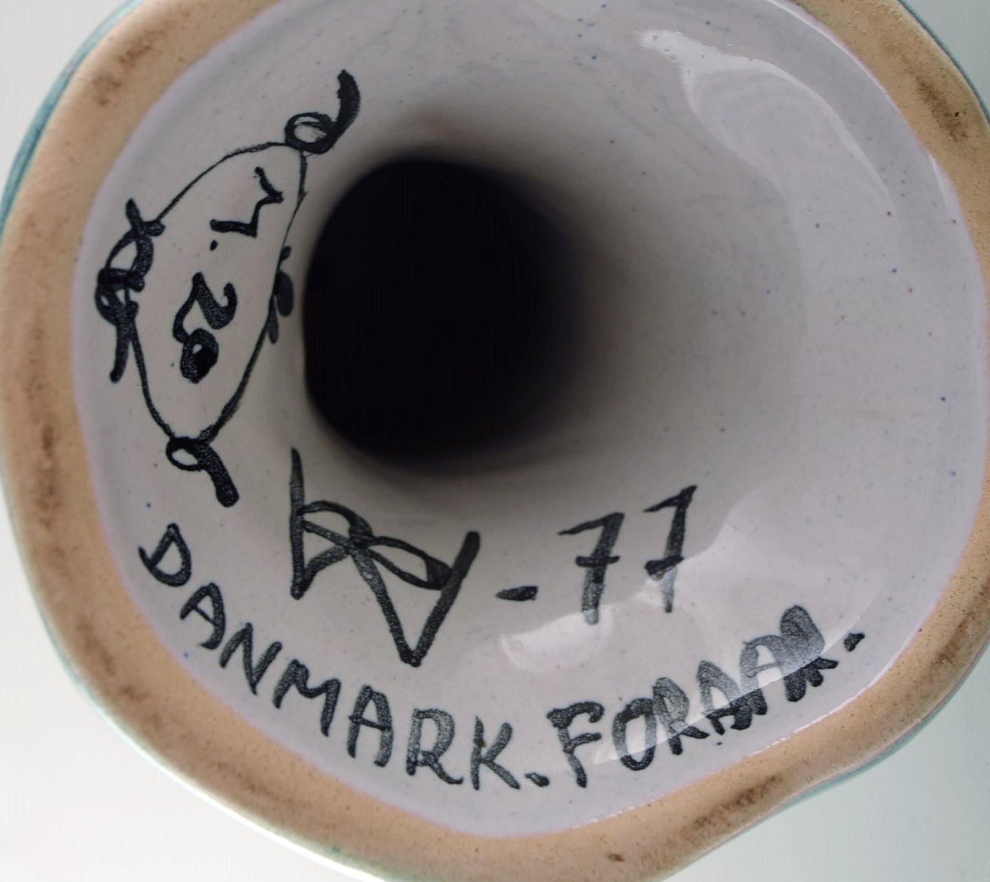Bjørn Wiinblad unique ceramic figure. "Spring" in grenn "Seasons" 1977. The blue house. Measures: 37,5 x 11 cm. Perfect condition. All four figures from the "Seasons" in stock.
