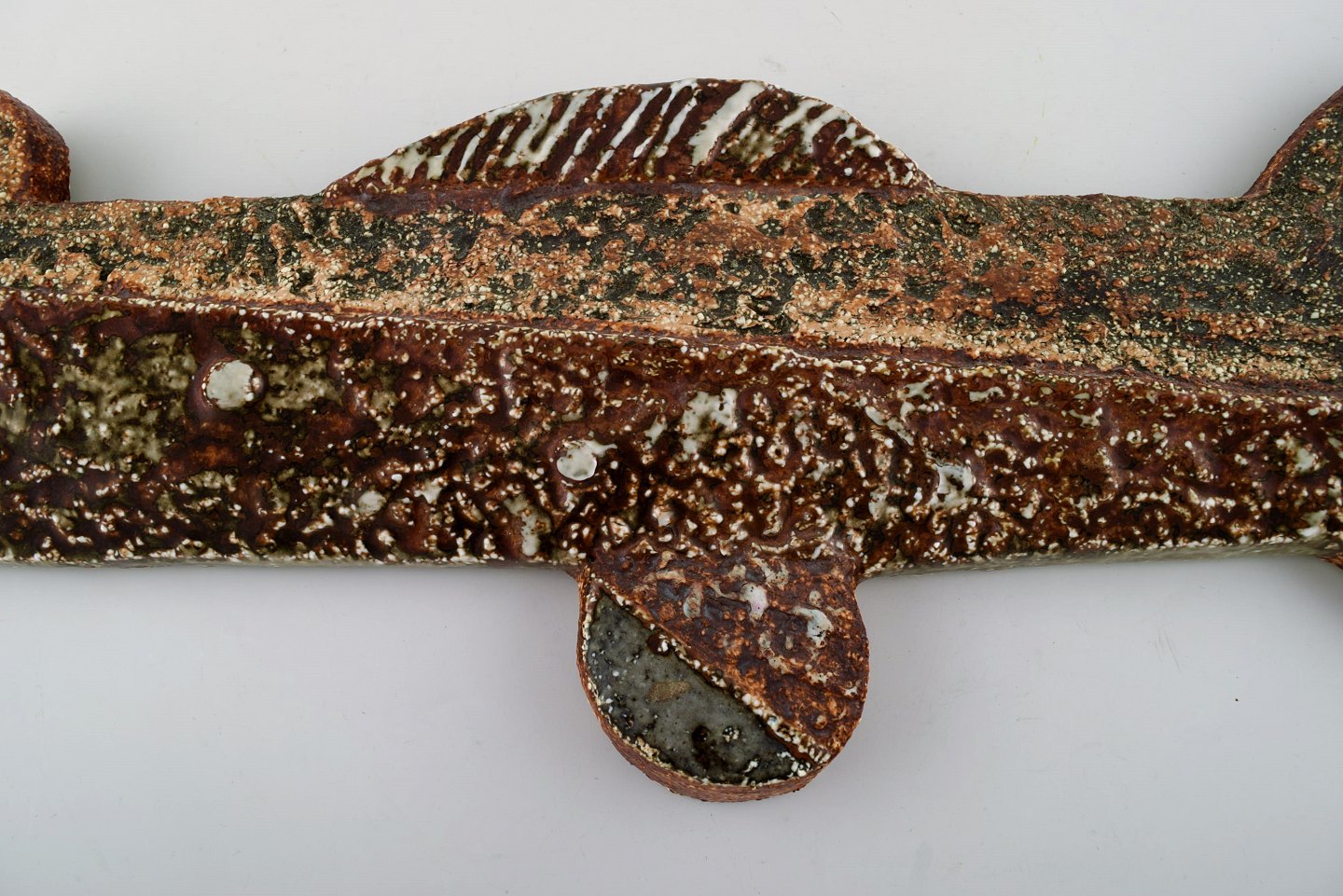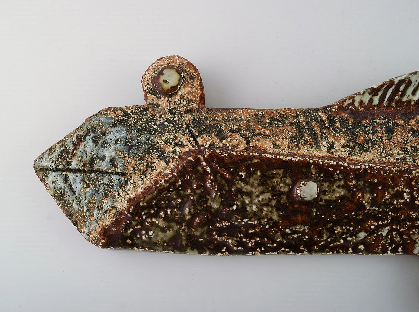 Carl-Harry Stålhane for Rörstrand/Rørstrand. Stor vægplakette i glaseret keramik i form af fisk. 1960'erne.