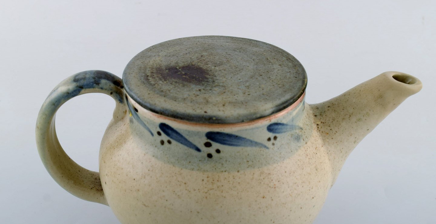Bernard Howell Leach (1887-1979). Modernistisk tekande med tilhørende låg i glaseret stentøj. Typisk rå 1950'er stentøjsmasse.
