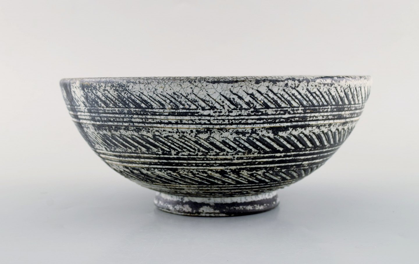 Kähler, HAK. Skål i glaseret stentøj. Smuk gråsort dobbeltglasur. 1930/40'erne.