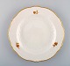 12 Meissen middagstallerkener i porcelæn med blomster og bladværk i relief og gulddekoration. 1900-tallet.