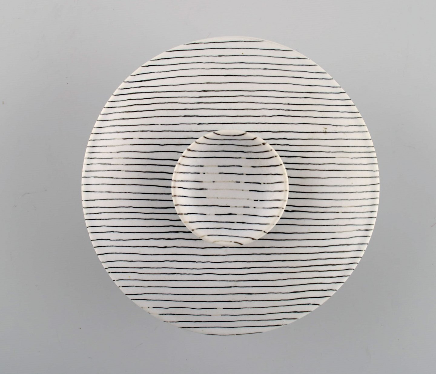 Stig Lindberg for Gustavsberg. Filigran lågskål i glaseret keramik med stribet design. 1950'erne.