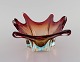 Stor Murano skål i rødligt og klart mundblæst kunstglas. 1960/70'erne. Måler: 30 x 10 cm. I flot stand. Mærkat.