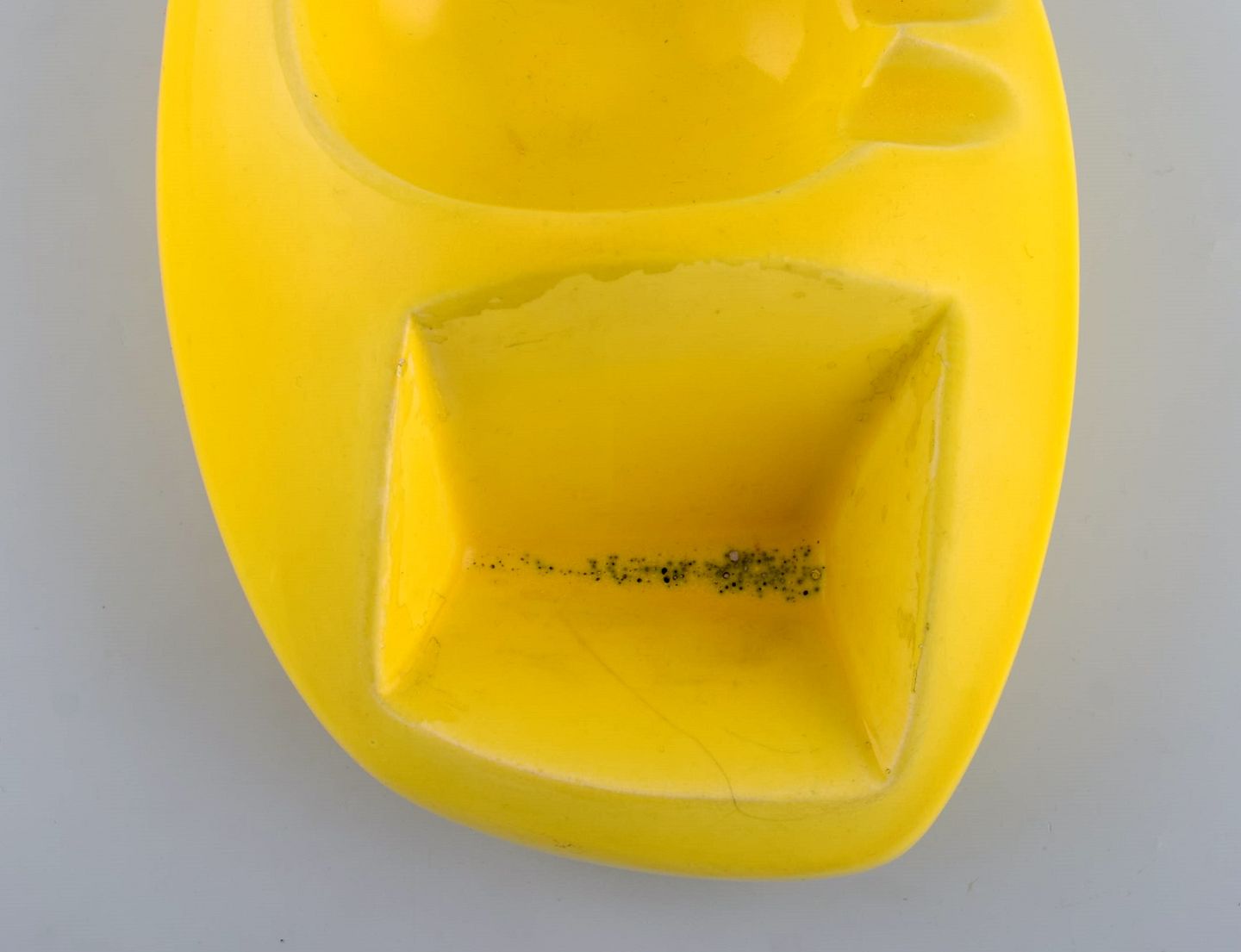 Georges Jouve (1910-1964), Frankrig. Skulpturel unika skål i glaseret stentøj. Skinnende gul glasur. Midt 1900-tallet.