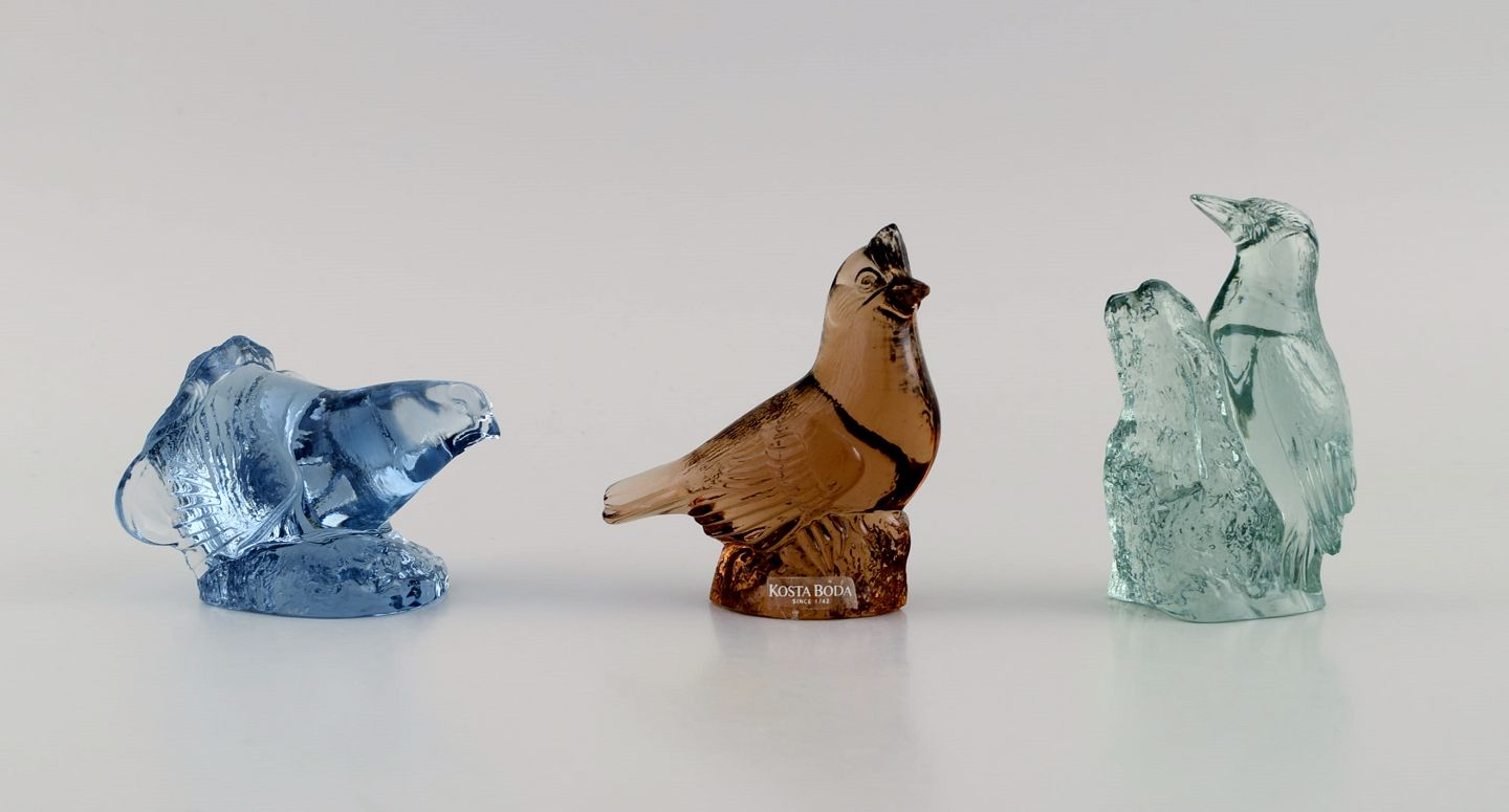 Paul Hoff for Swedish Glass. 9 birds in art glass. WWF. Mid 20th century.