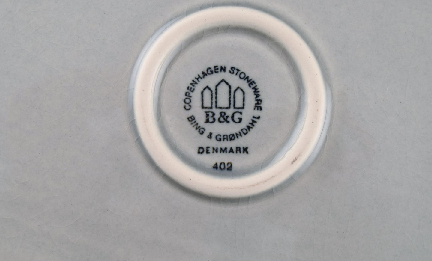 Bing & Grøndahl Mexico middagsservice. To store serveringsfade i glaseret stentøj. Dansk design, 1970/80'erne. Fad diameter: 29,5 cm. I flot stand. Stemplet.