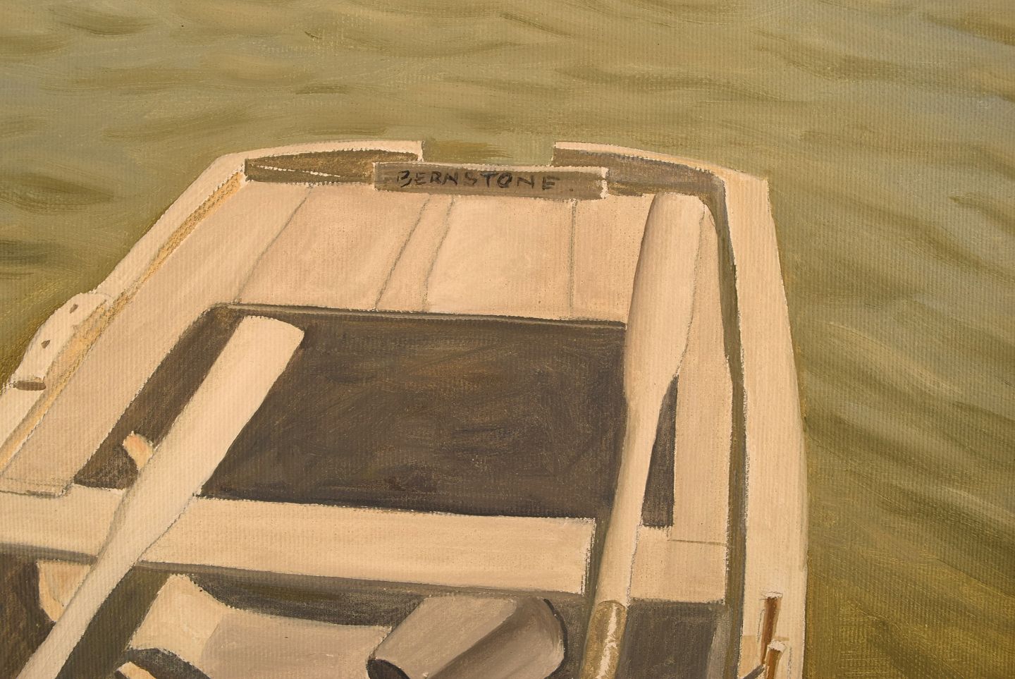 Kaj Bernstone (f. 1947), svensk kunstner. Olie på lærred. Jolle med årer. Sent 1900-tallet.