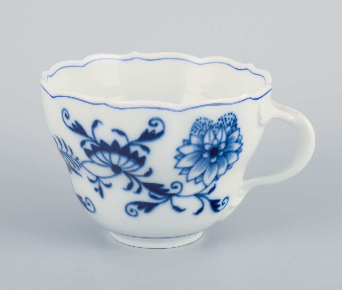 Meissen, Tyskland. Seks løgmønstret kaffekopper med underkopper i håndmalet porcelæn.