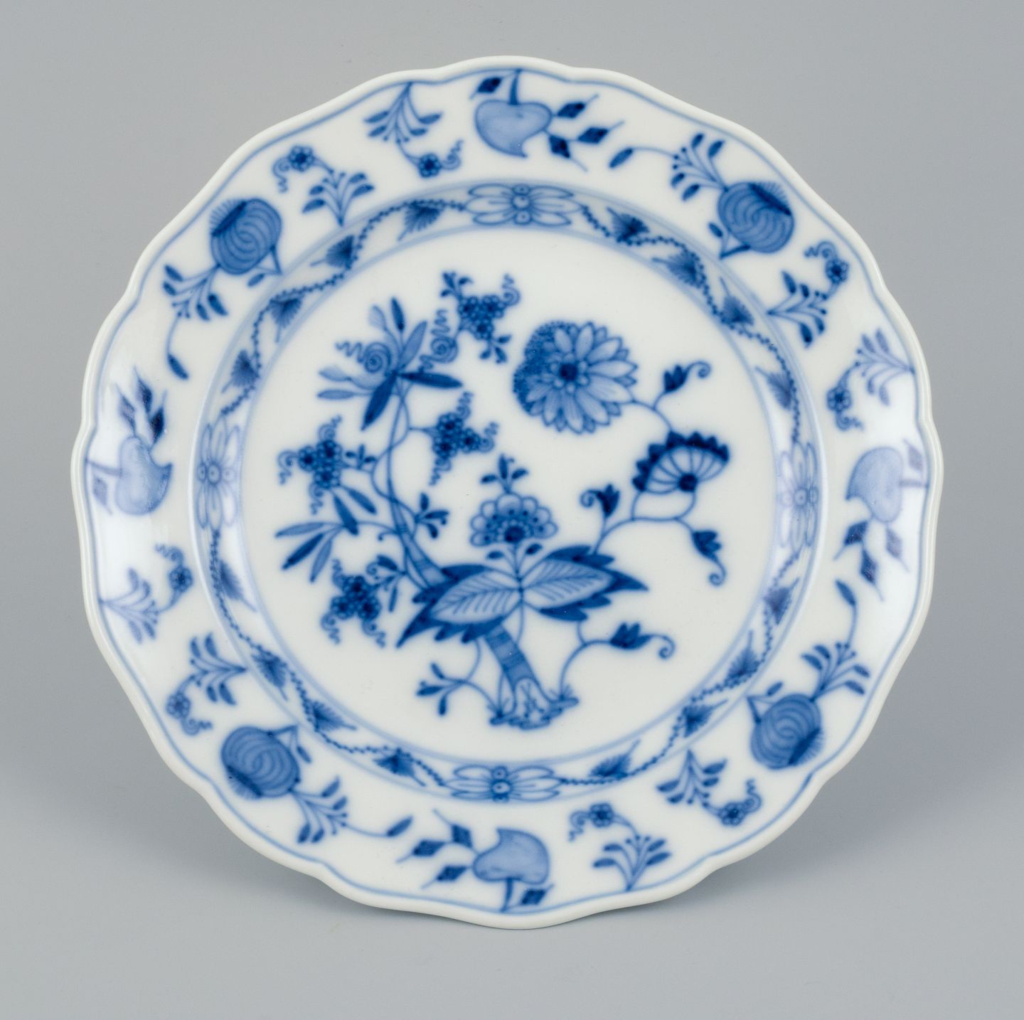 Meissen, løgmønstret, et sæt på tre håndmalet middagstallerkner. Tidligt 1900-tallet. Stemplet. I flot stand. Femte sortering. Mål: D ca. 24,5 x H 3,5 cm. Målene kan variere en lille smule.