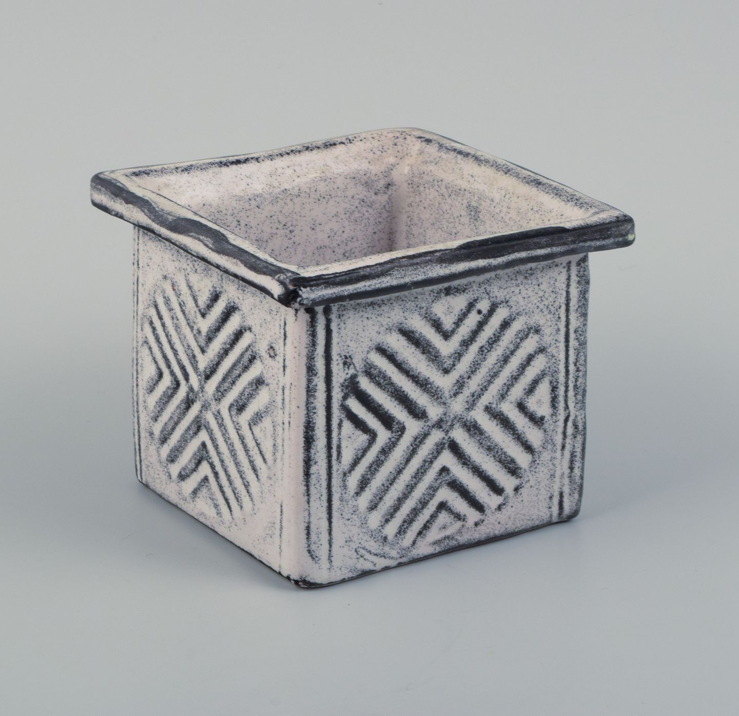 Nils Kähler for Kähler. Kvadratisk vase i glaseret stentøj. Smuk gråsort dobbeltglasur. 1930/40'erne. Signeret. Perfekt stand. Mål: D 9,3 x H 7,7 cm.