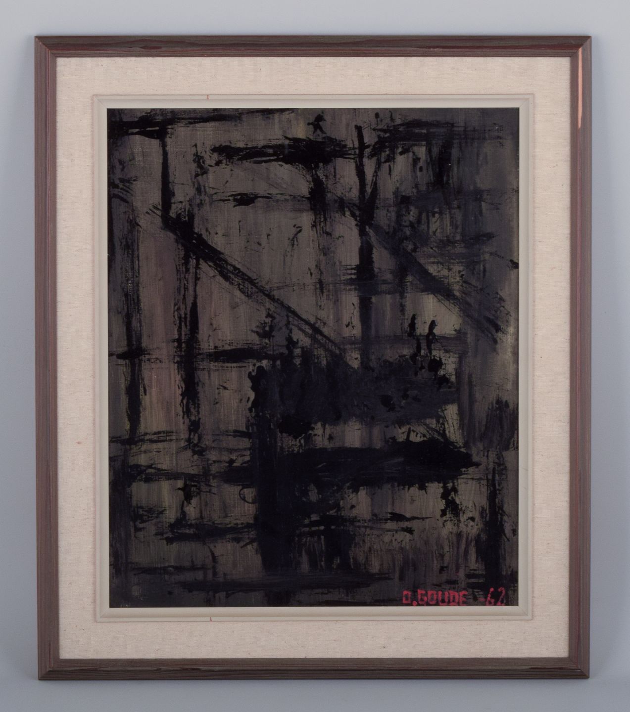 Olle Goude, svensk kunstner, olie på plade. Abstrakt komposition. Signeret og dateret 1962. Perfekt stand. Lysmål: cm. 44,0 x 36,0 cm. Totalmål: 57,0 cm. x 49,0 cm.