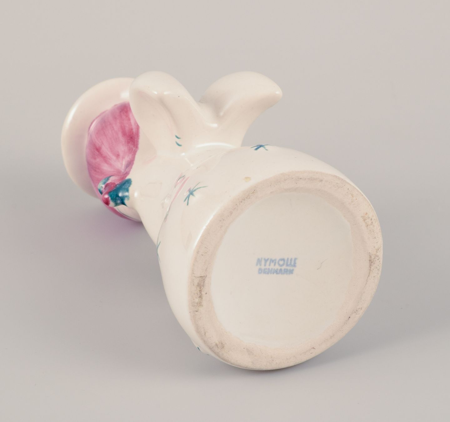 Nymølle, Danmark. Et par lysestager af engle i fajance. Hånddekoreret. Ca. 1960. Stemplet. Perfekt stand. Mål: D 5,0 cm. x H 12,0 cm.
