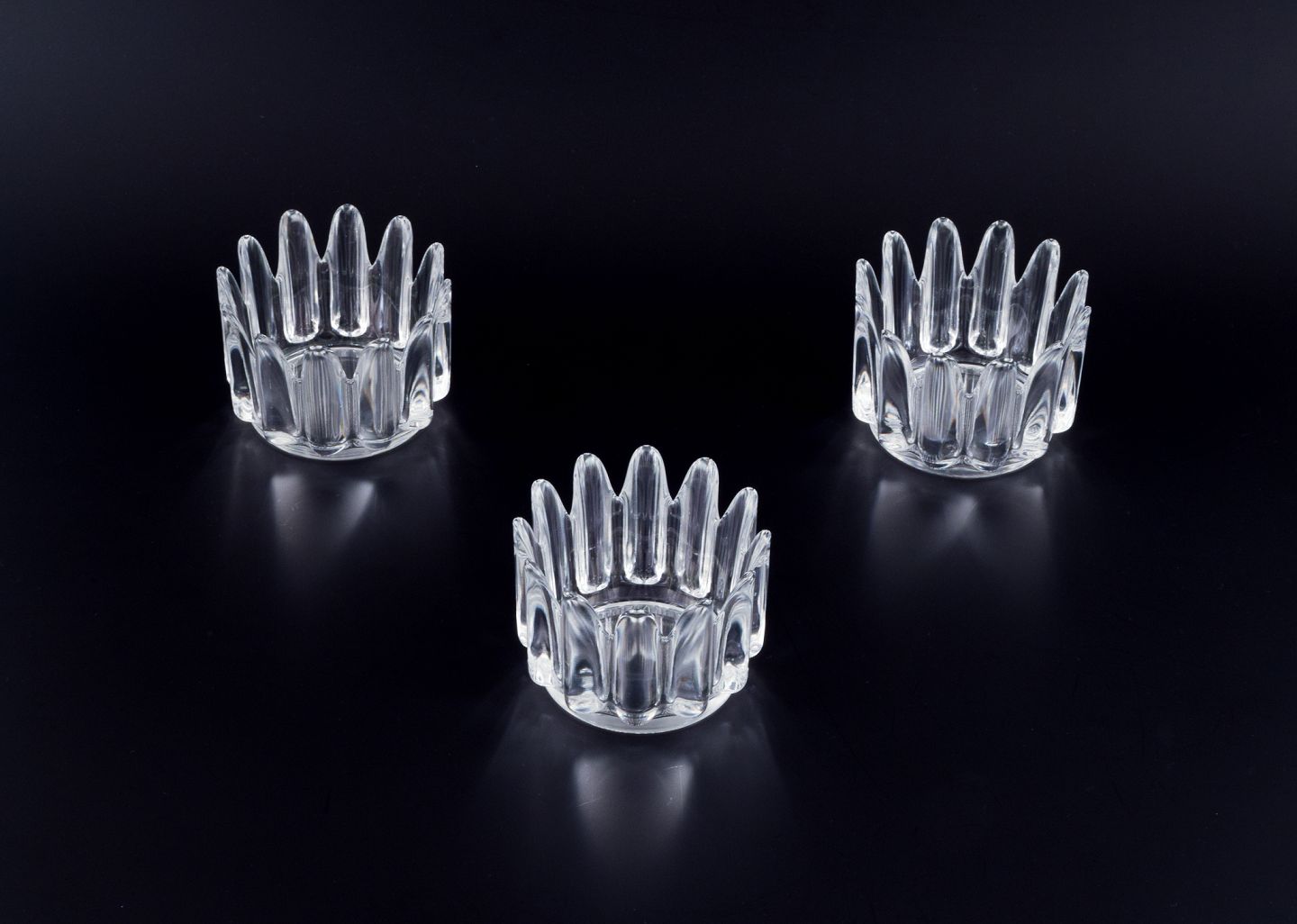 Sven Palmqvist for Orrefors, Sverige. Tre kunstglasskåle i krystalglas. Midt 1900-tallet. Signeret. Perfekt stand. Mål: D 11,0 cm. x H 8,0 cm. hver. Samlet H 20,2 cm.