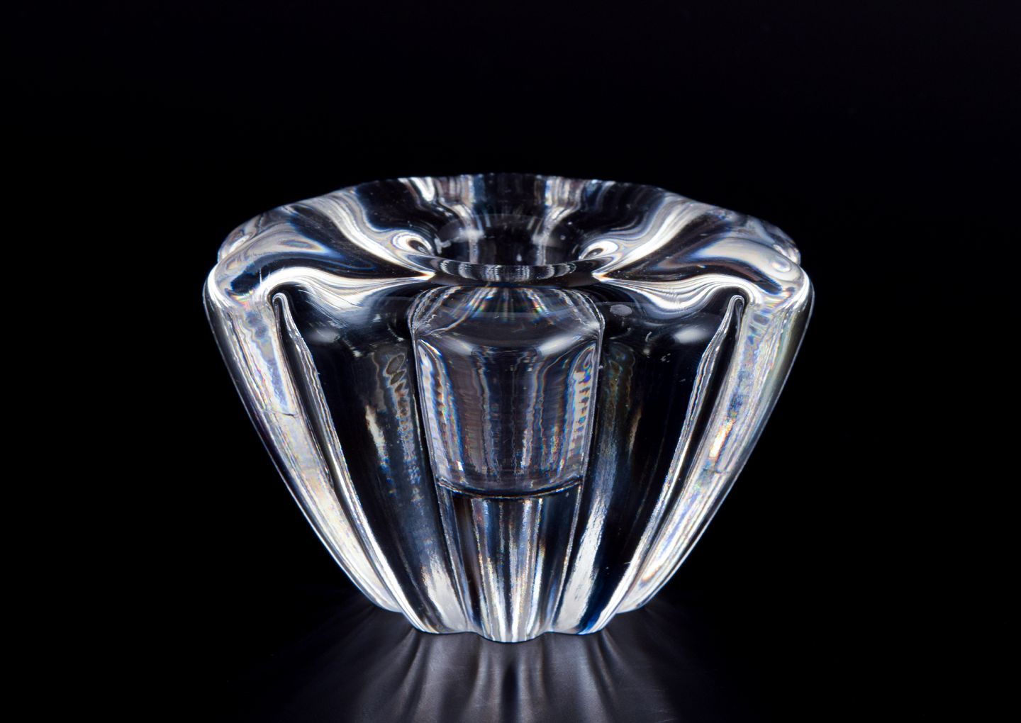 Sven Palmqvist for Orrefors, Sverige. Fire kunstglas lysestager i krystalglas i to forskellige størrelser.