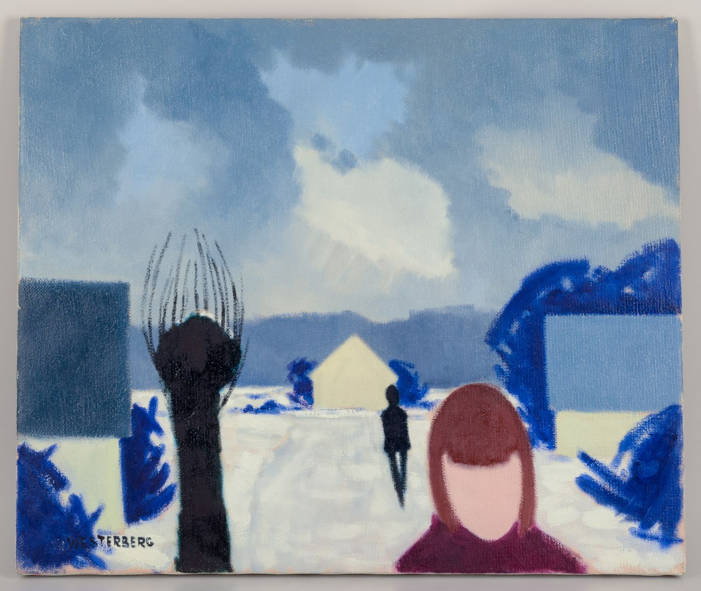 K. Westerberg alias Knud Horup (1926-1973), Danish artist. Oil on canvas. Modernist style. Landscape with figure. 1970s. Signed. Perfect condition. Dimensions: W 60.0 cm x H 50.0 cm.