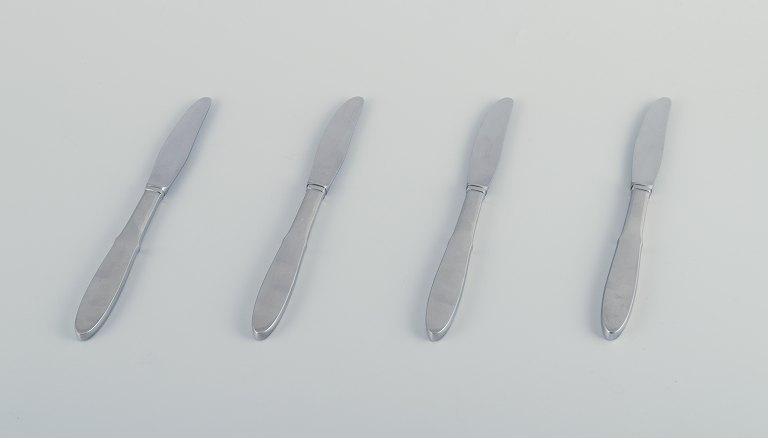 A set of four long-handled "Mitra" lunch knives in stainless steel.