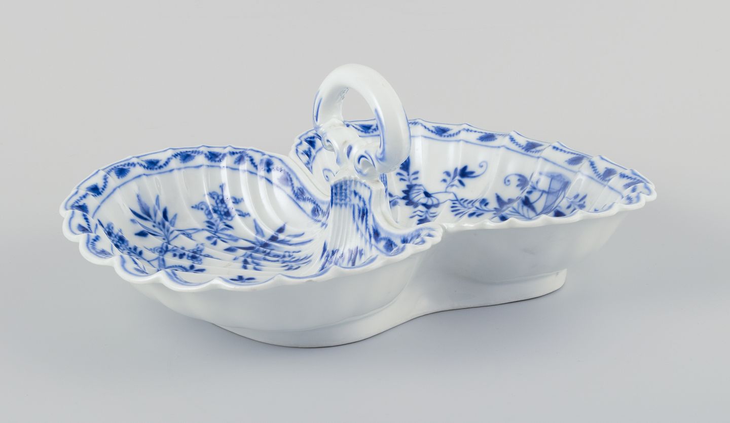 Meissen, Germany. Blue Onion cabaret tray made of porcelain, two-part with handle.