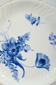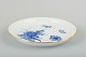 Porcelæn, håndmalet i blå underglasur med blomsterdekoration, svejfet kant med formet bort og håndpålagt forgyldning.