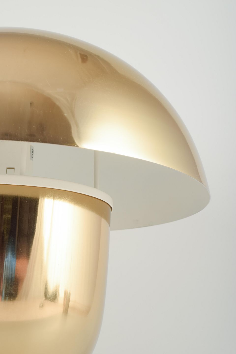 Organisk formet bordlampe i poleret messinglook med svampeformet skærm.