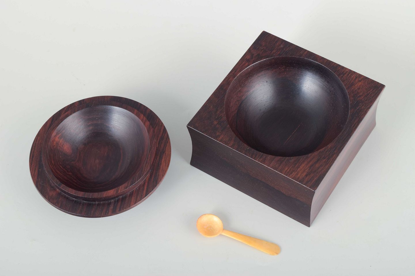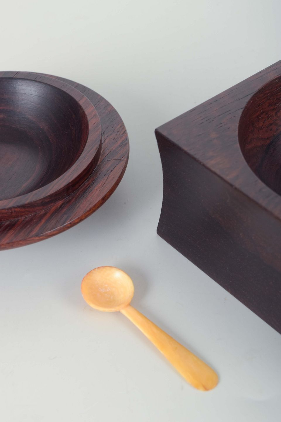 Eksotisk træ, saltkar med ske, 1960’erne.