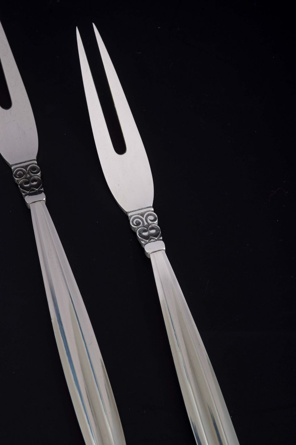 Elegante gafler i det klassiske “Konge / Acorn”-mønster, designet af Johan Rohde i 1915. Dekoreret med det karakteristiske akantusblad og agernmotiv.