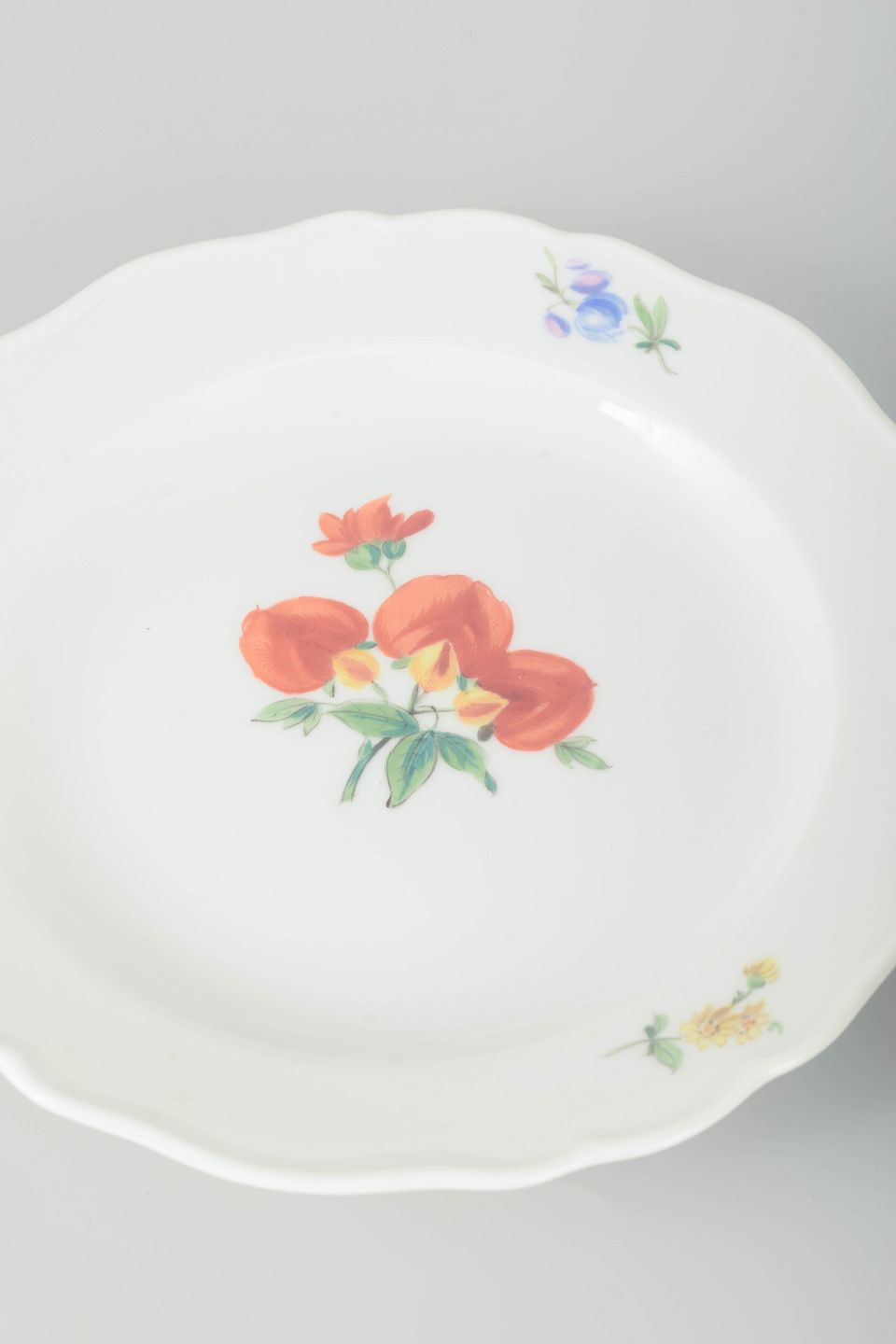 Meissen har siden begyndelsen af 1700-tallet været Europas førende porcelænsfabrik, kendt for sin håndmalede dekoration og tekniske perfektion. Blomsterdekorationerne, ofte inspireret af naturstudier, blev et symbol på manufakturens klassiske stil og håndværksmæssige kvalitet.