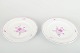 Sæt af tre håndmalede middagstallerkener i porcelæn med dekor i lilla blomsterkompositioner og let bølget kant. Typisk for Meissens klassiske modeller med fin staffering i rosa toner.