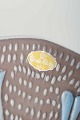 Dekorativt fad i glaseret keramik med reliefmønster af blomster i blå, grønne og hvide nuancer mod brun baggrund.