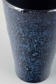 Cylindrisk vase i stentøj med dyb, mørkeblå glasur med let krystallinsk struktur.