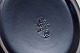 Hånddekoreret keramisk fad med mørk, grov chamottebund og radiært orange reliefmønster, omgivet af hvide prikmotiver — indrammet af en dyb, blank kongeblå glasur.