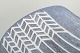 Organisk form med indadbuede sider og gråblå indgraveret dekoration med geometrisk bort.