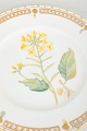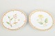 To porcelænstallerkener med håndmalede botaniske motiver og guldbemaling langs kanten. 2. sortering.