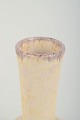Håndlavet vase i glaseret stentøj med lysegul krakeléglasur og subtil violet nuance ved rand. Model 2762.
