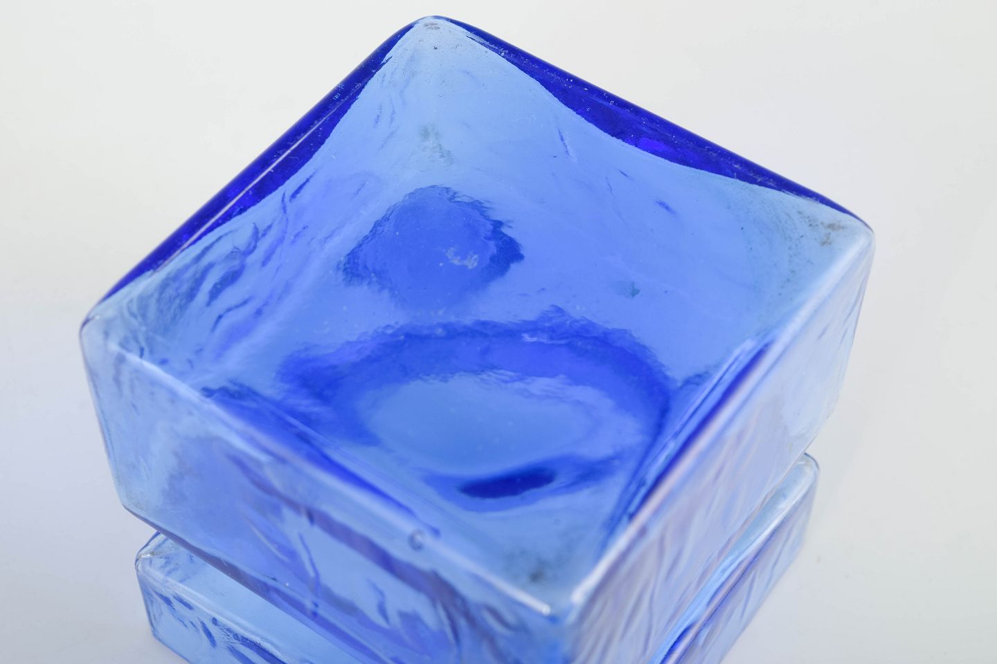 Mundblæst glasvase i klar blå farve fra den ikoniske ”Pala”-serie, kendetegnet ved sine geometriske modulformer og strukturerede overflade.