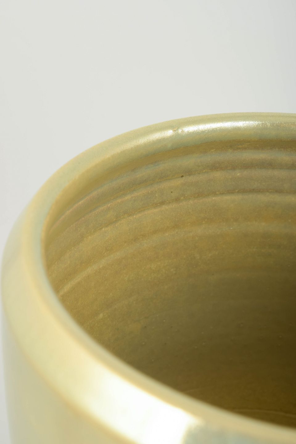 Håndlavet vase i keramik med en smuk, iriserende perlemorsglasur i lyse gyldne toner. Formen er klassisk konisk med let afrundet åbning, hvilket giver vasen et elegant og tidløst udtryk, typisk for Mobachs håndværkstradition.