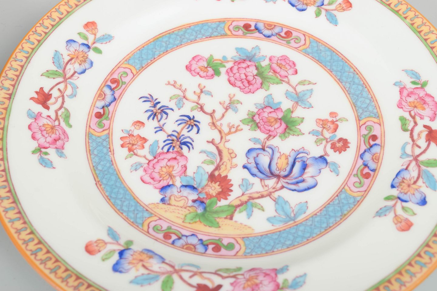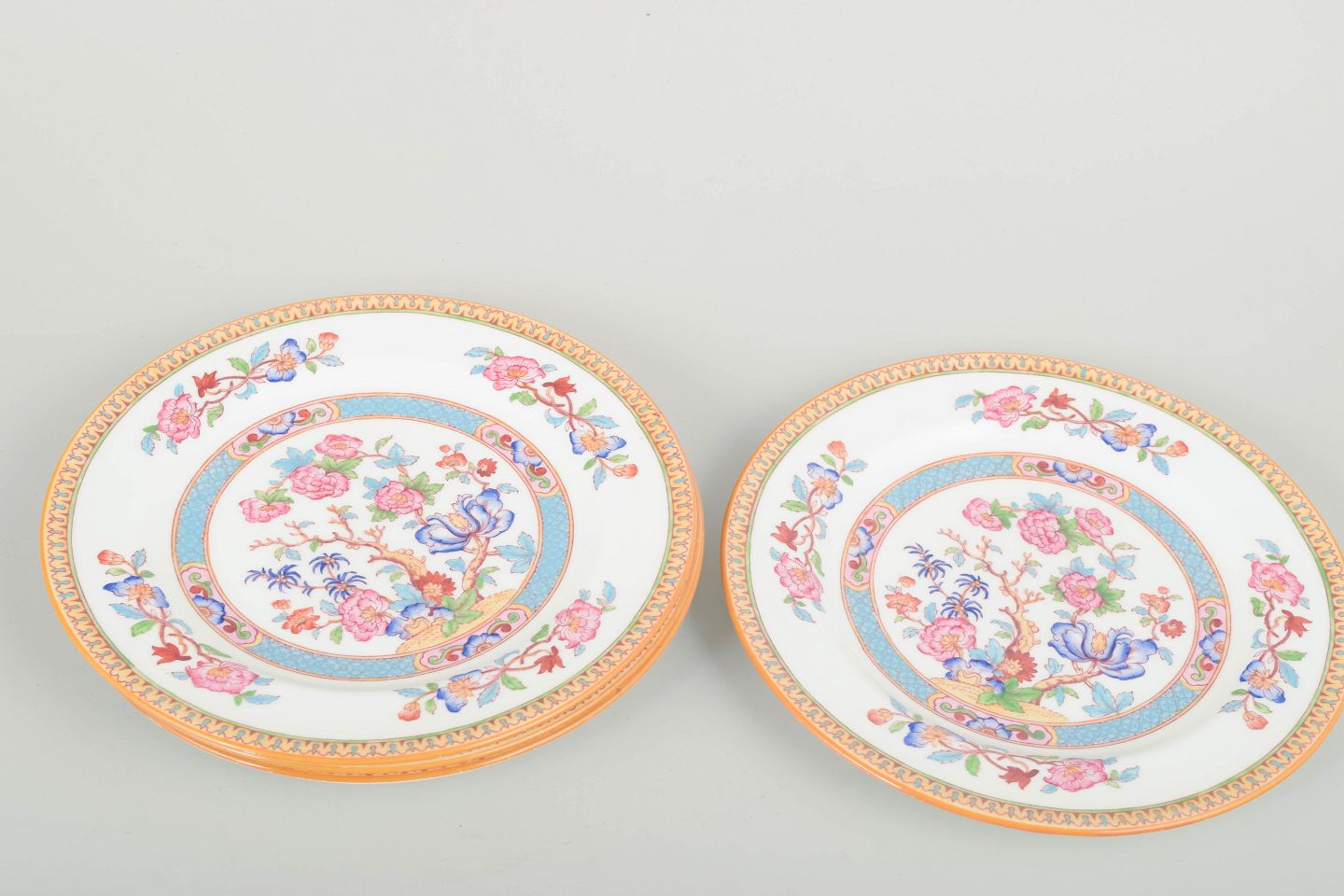 Cauldon China traces its origins to 1774 and is renowned for English faience and porcelain tableware featuring rich decorative motifs. Mid-century production often blends traditional English design with vibrant orientalist-inspired patterns, executed in transfer print with hand-finished details.
