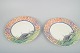 To dekorative fajancetallerkener fra Gien i det karakteristiske “Savane”-mønster med farverig bort og naturalistisk motiv.