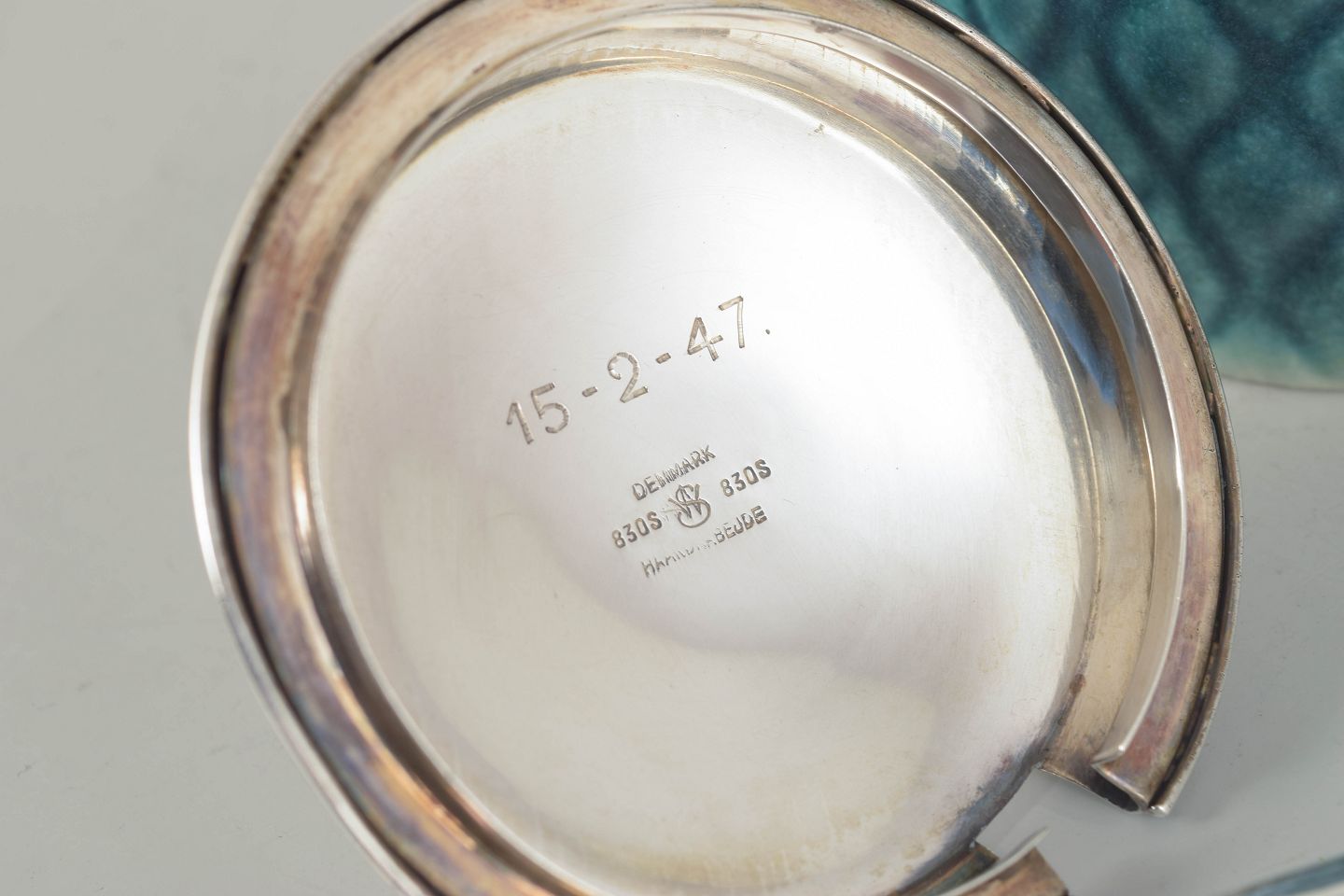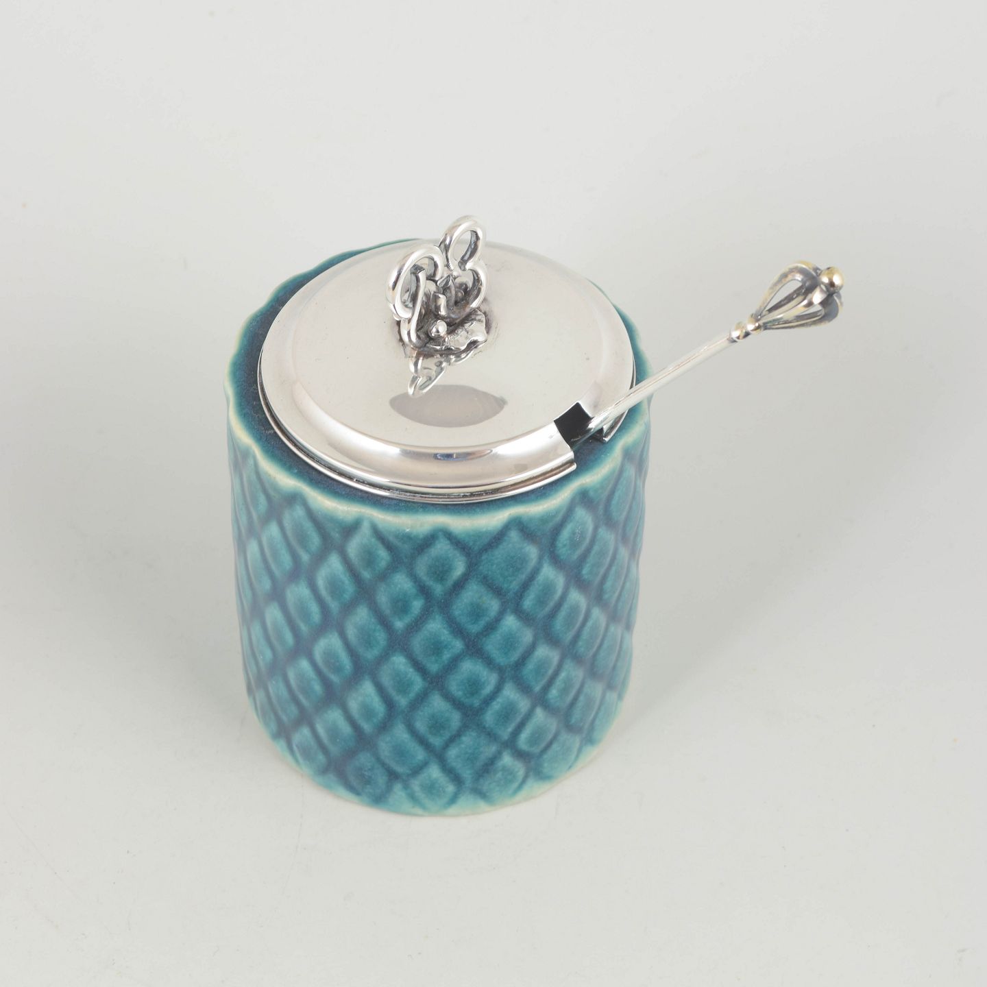 jam jar with 830 silver lid and 830 silver spoon, mid-20th century.