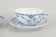 Tea cups in Blue Fluted Half Lace, hand-painted porcelain. The classic blue decoration and generous cup shape make this a popular form within the series. One cup has two surface scratches, while the other pieces are 1st quality.