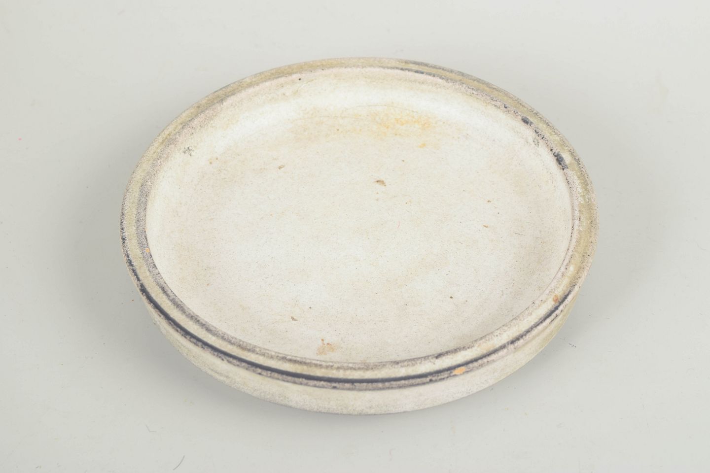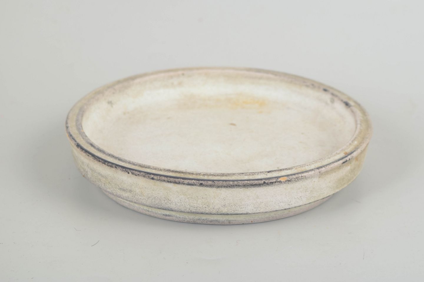 Lav, cirkulær skål udført i stentøj med enkel, arkitektonisk form og diskret profileret kant. Den lyse, afdæmpede glasur i creme- og sandtoner understreger Svend Hammershøis karakteristiske fokus på proportion, overflade og stoflighed. Et klassisk eksempel på Kählers funktionelle og tidløse formsprog fra mellemkrigstiden.
