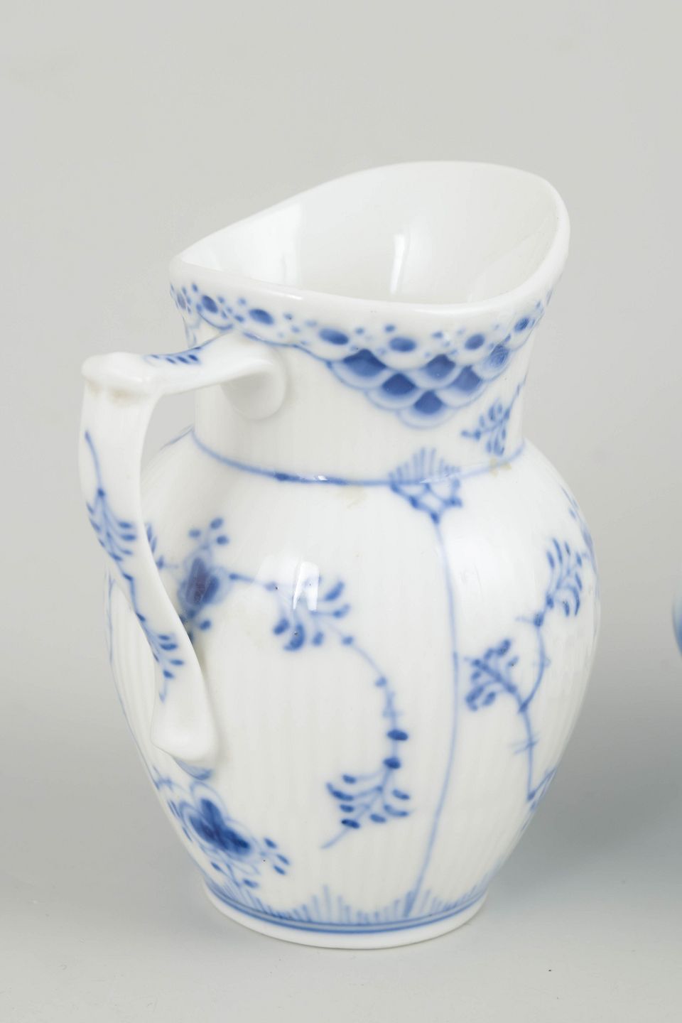 Royal Copenhagen musselmalet halvblonde flødekande og sukkerskål, sent 1900-tal.