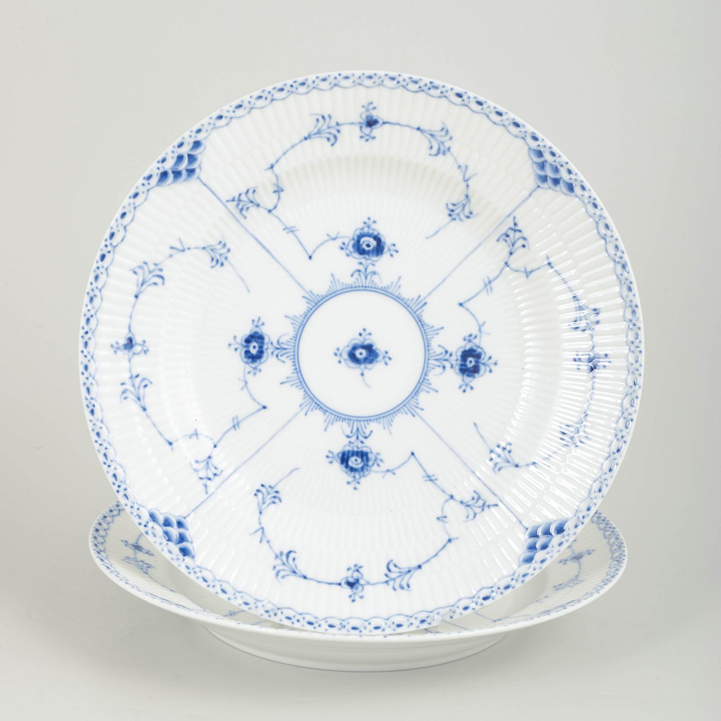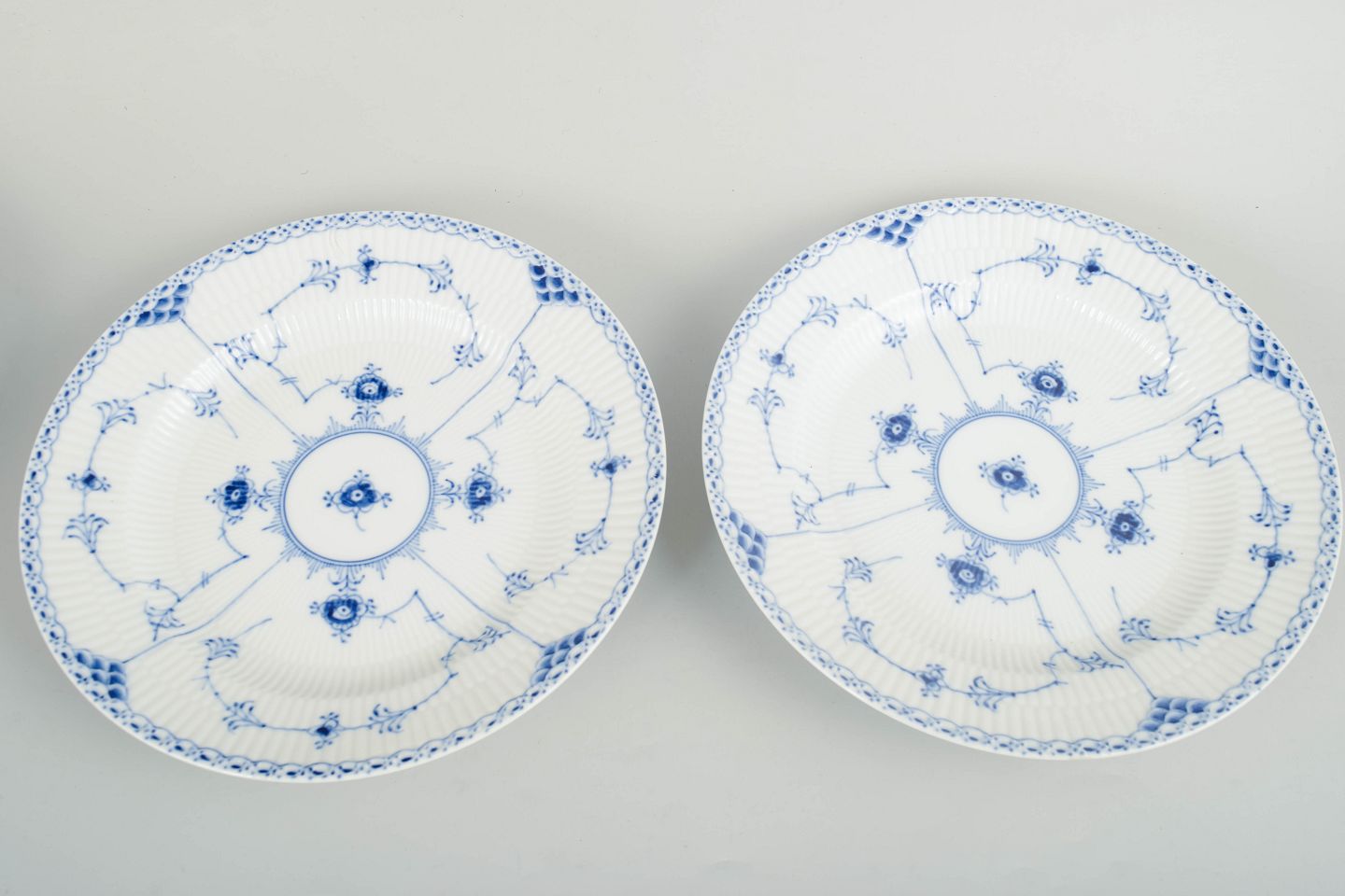 Royal Copenhagen Blue Fluted Half Lace, set of two dinner plates.