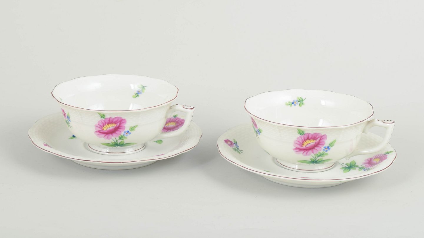Herend, sæt af to tekopper med tilhørende underkopper.
