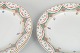 Sæt med fire porcelænstallerkener fra Royal Copenhagen i dekorationen Christmas Joy, model 622. Tallerkenerne er dekoreret med en farverig bordure med guirlander, stjerner og små ornamentale detaljer i grønne og røde toner omkring en hvid midte. Serien blev produceret i slutningen af det 20. århundrede og er udført i klassisk Royal Copenhagen porcelæn med fin glasur og præcis dekoration.