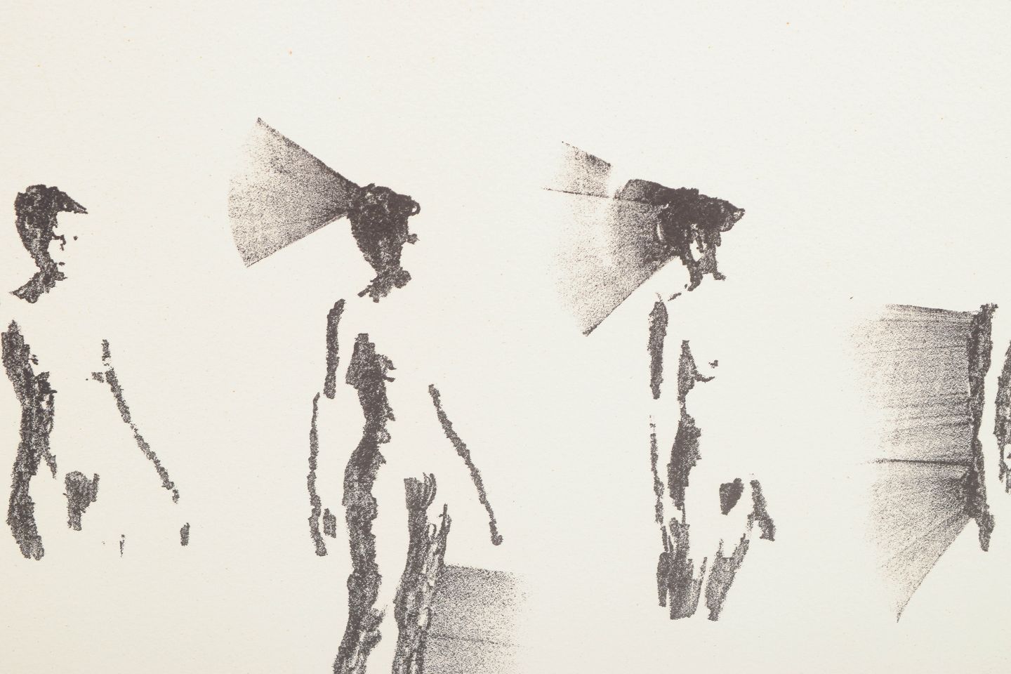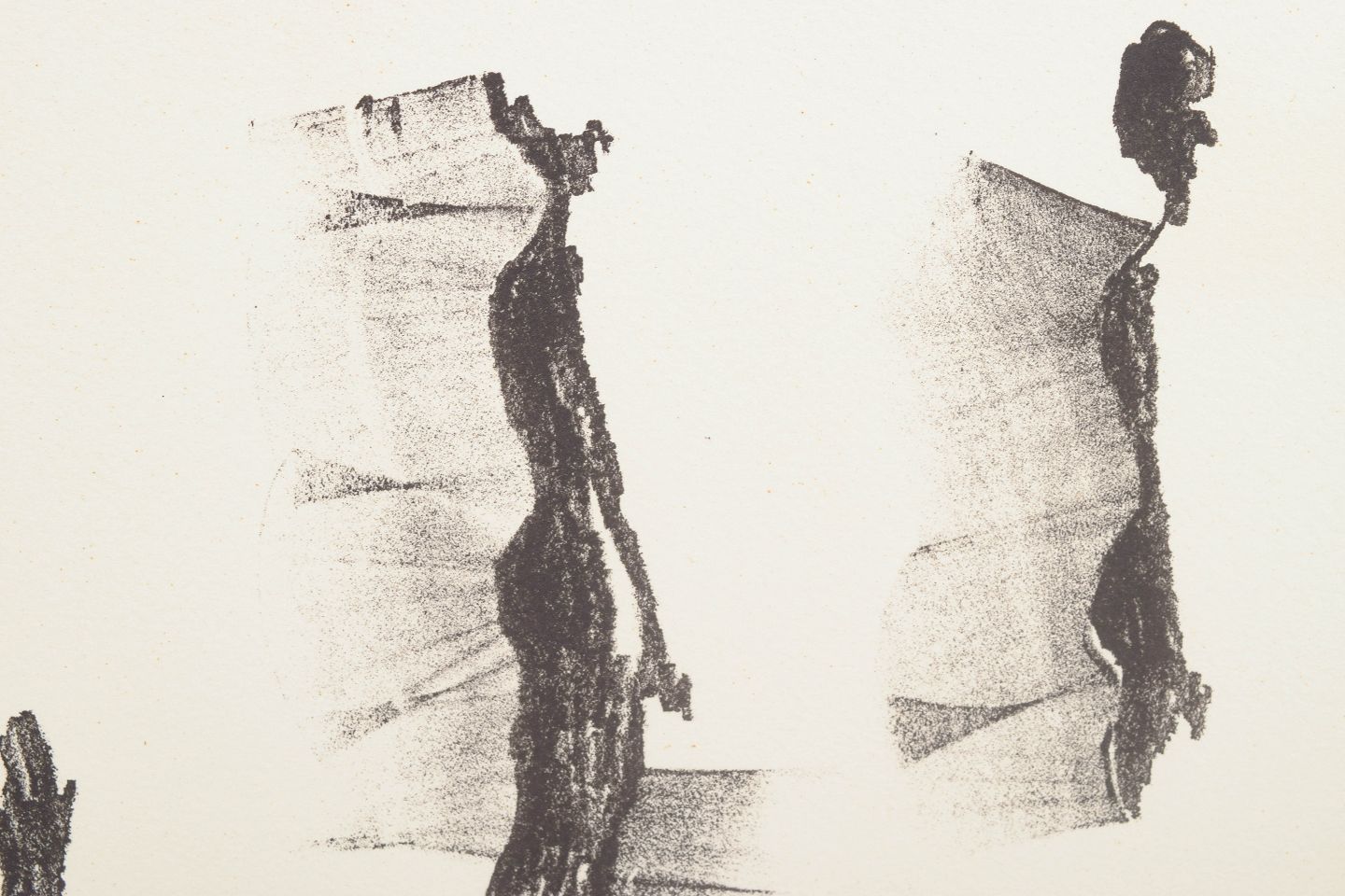 Grafisk komposition med studier af stående nøgne figurer udført som litografi, signeret med blyant, dateret 1971 og nummereret 10/55.