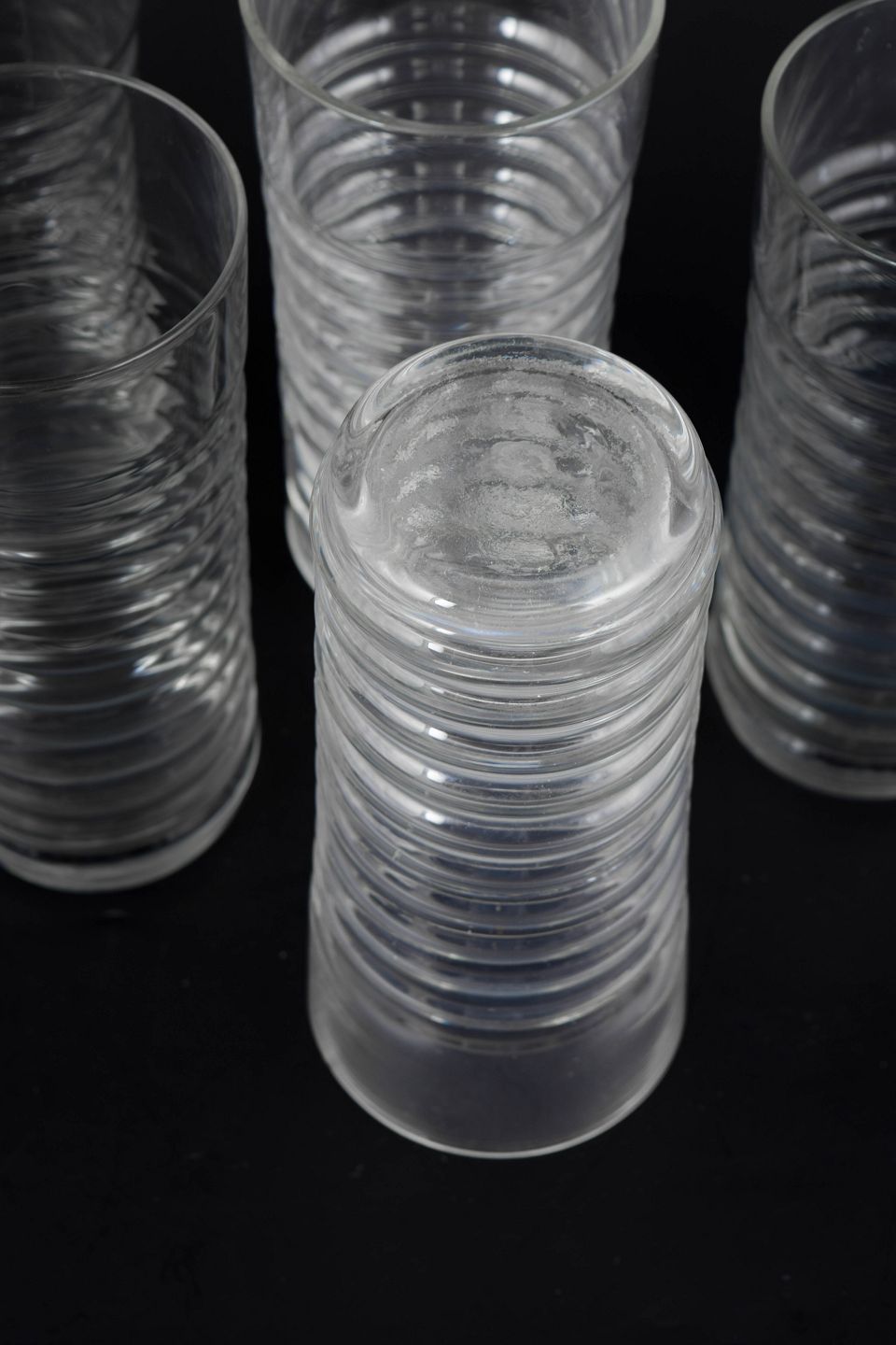 Clear glass from the Perpetum Mobile series with a distinctive ribbed structure and cylindrical form.