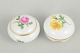 Meissen, to lågkrukker med polykrom blomsterdekoration.